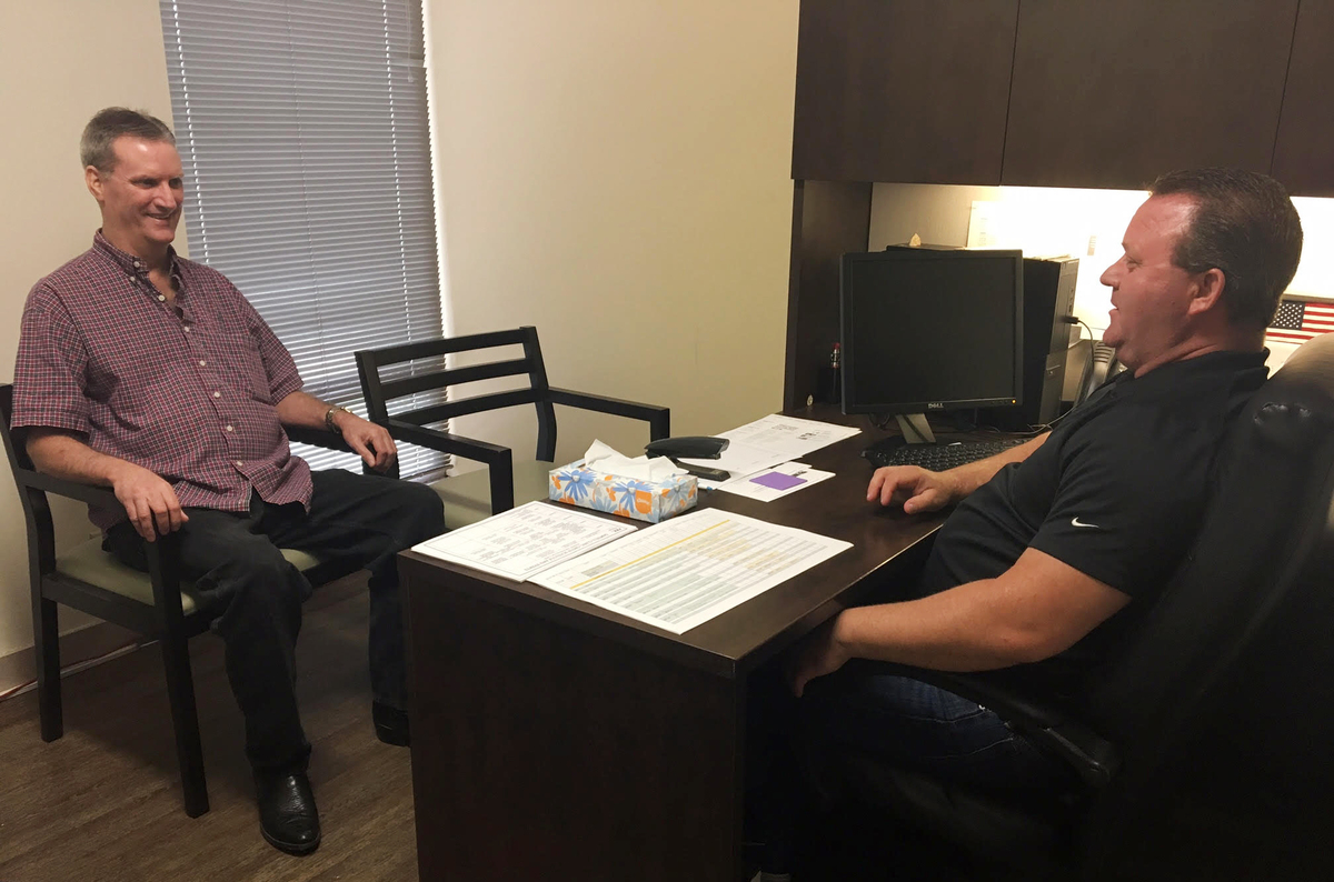 David Woodside visits David Yarborough’s office several times a week to get helpful coaching on how to manage the symptoms of his bipolar and schizoaffective disorder. “Dave’s been through a lot of the things I’ve been through — and vice versa,” Woodside says.
